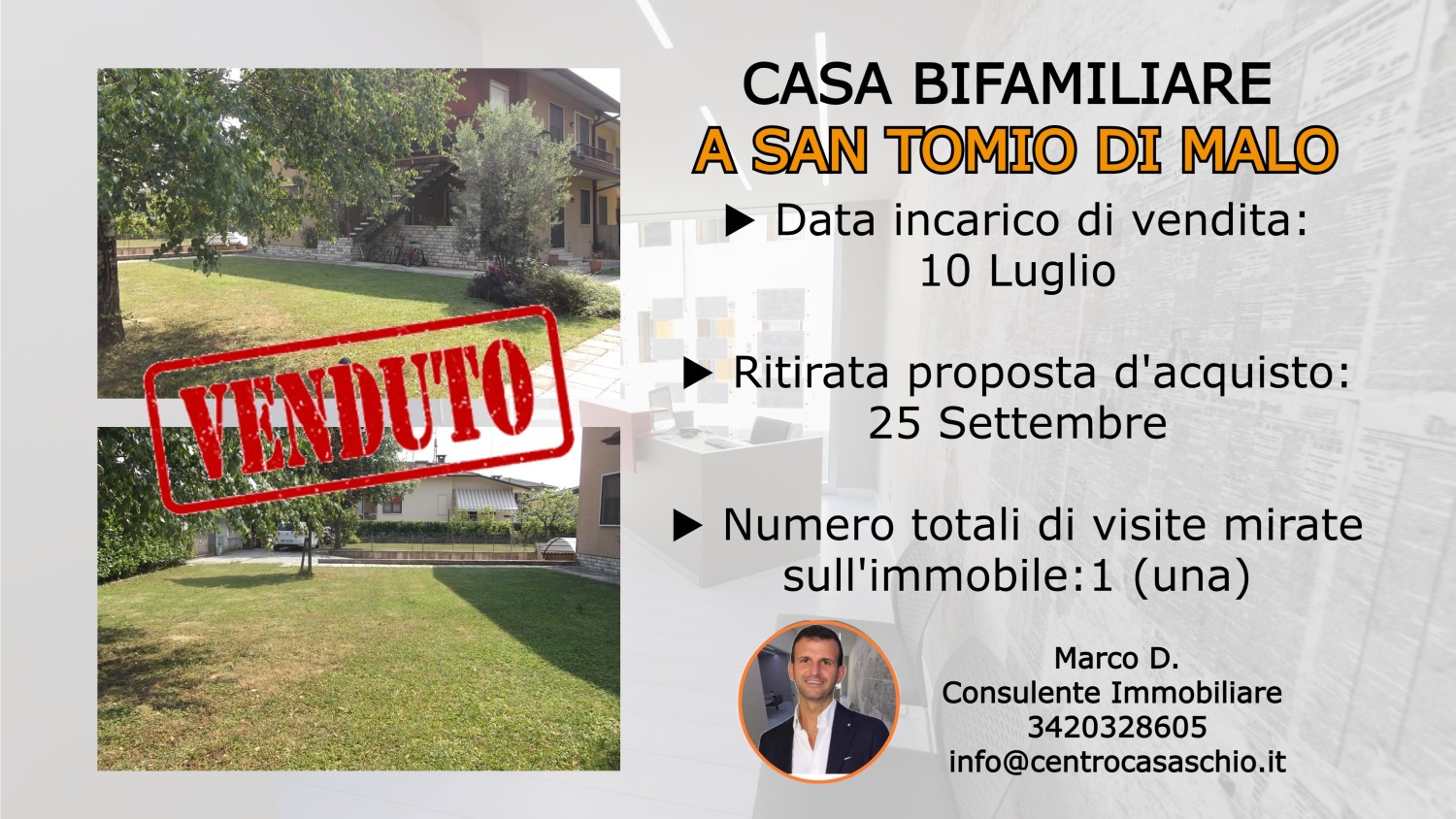 VENDITORE: Non mi aspettavo che in poco più di due mesi Marco mi contattasse perchè aveva una proposta di acquisto a prezzo...